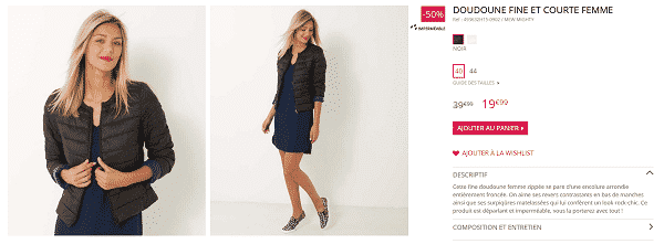 En effet, cette fine doudoune imperméable pour femme profite d’une remise de 50% sur son prix de départ.