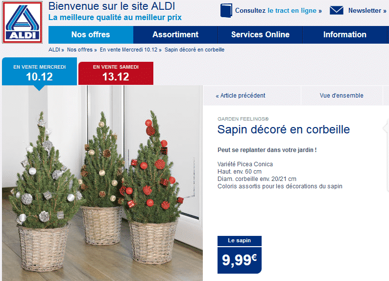 Aldi propose lui sapin épicéa de 60 cm de haut dans sa corbeille au prix de 9,99 €.